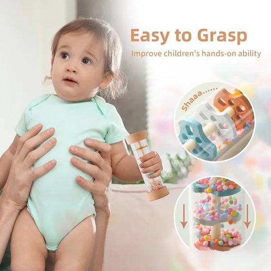 Rainbow Hourglass Rain Sound Tube – Wooden White Noise Toy for Baby Comfort and Sensory Play