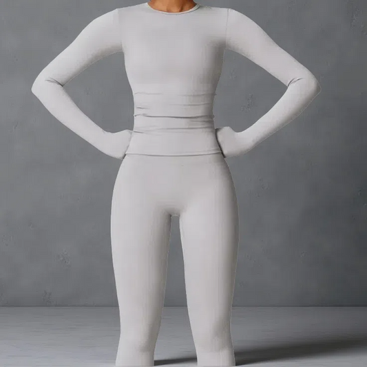 Tight-Fitting Brushed Yoga Set – Quick-Drying Fitness Long Sleeve & High Waist Leggings for Women
